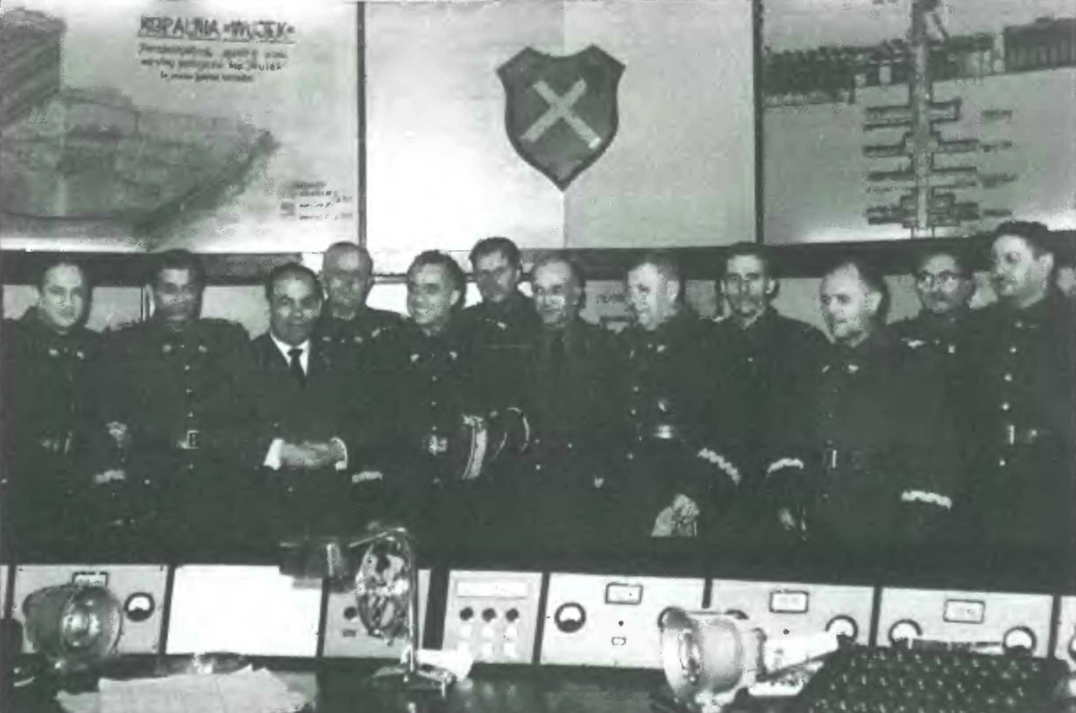 - części łącznościowej, czyli stołu z umieszczonymi przełącznikami uruchamiającymi bezpośrednią łączność radiową z górnikami, pracującymi na dole kopalni oraz