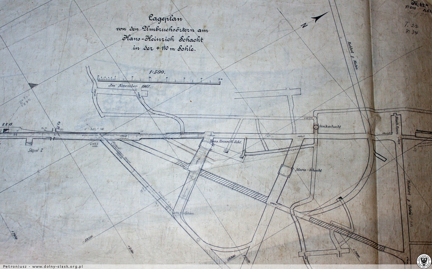 Odbudowy pokładów prowadzi się częściowo na zawał, częściowo zaś z zastosowaniem podsadzki suchej. W ostatnich czasach stosuje się coraz to więcej tę ostatnią metodę. Pomiary niwelacyjne przeprowadza się już od roku 1895, to znaczy od tego samego czasu, na który przypada początek tych samych pomiarów w zagłębiu westfalskim, wykonywanych systematycznie na skutek zarządzenia Wyższego Urzędu Górniczego w Dortmundzie (...)."